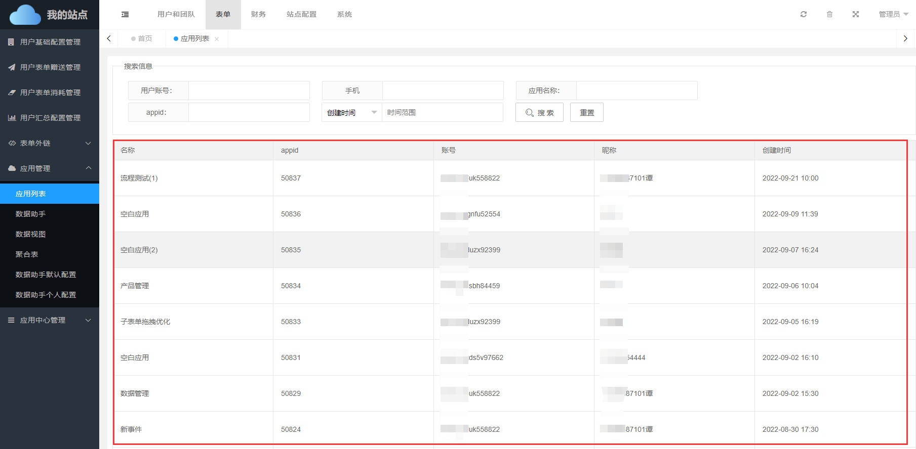 应用列表页面主要是对已经安装的应用进行管理,在此页面可列出所有用户的应用。
