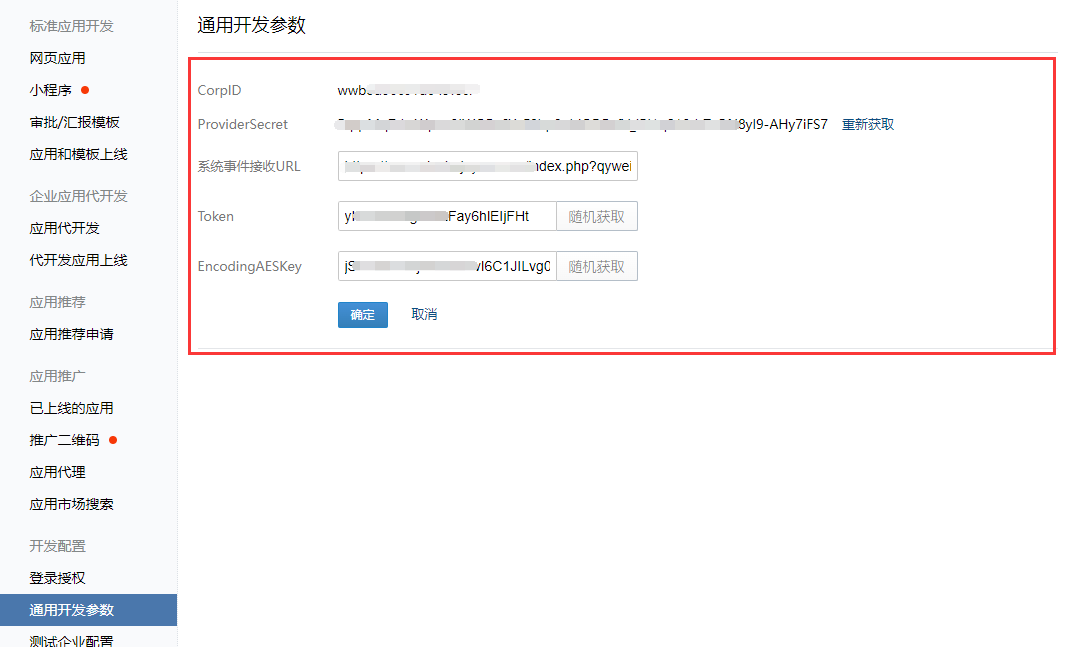 最后点击企业微信通用开发参数里的确认按钮