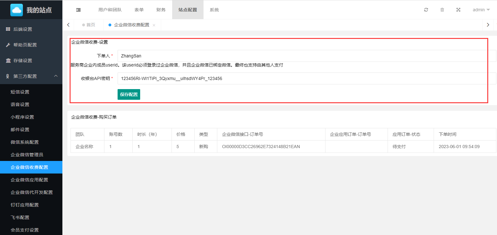 19. 企业微信收费配置