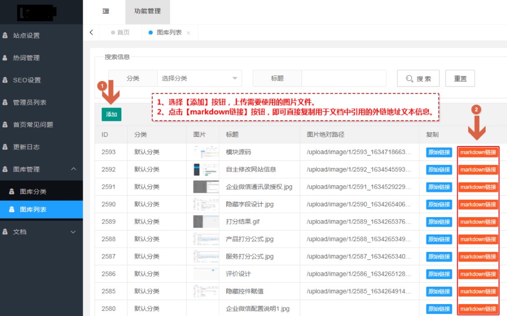 文档中所有的图片预览,都需要在此板块上传后引用。
