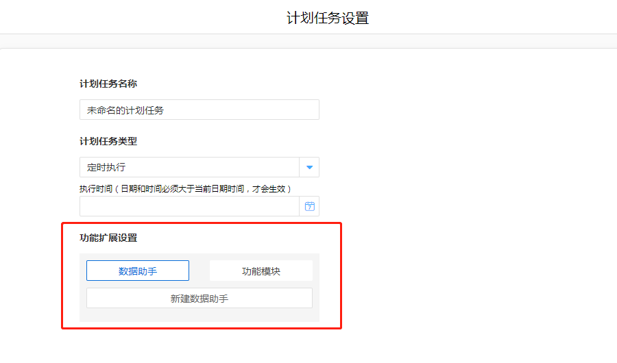 - 进入流程表单的计划任务配置页面,点击数据助手进入助手配置