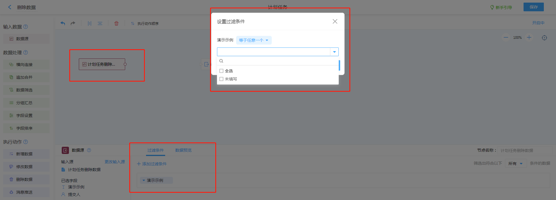 - 设置过滤条件,需要删除的数据项。