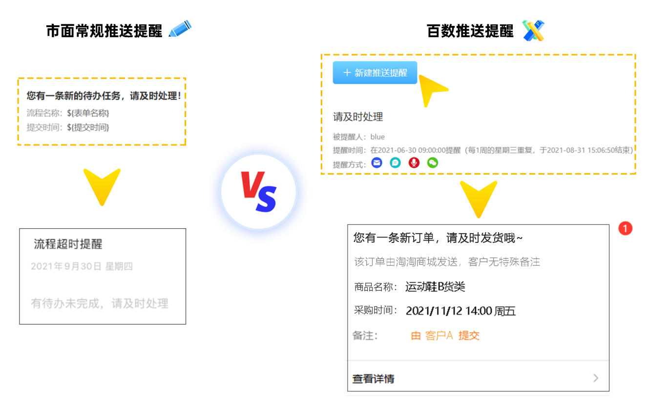 市面上常规的待办提醒功能较为固化,仅仅能套用固有的消息模板,如:您有一条待办提醒/您有一条转交提醒...