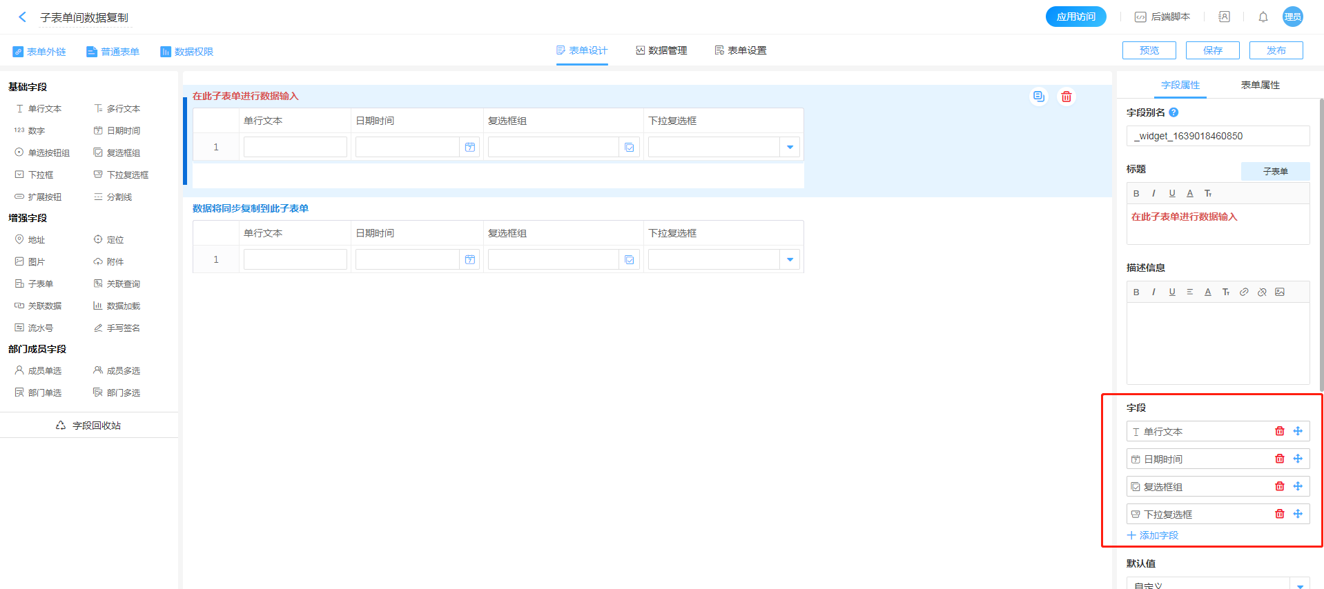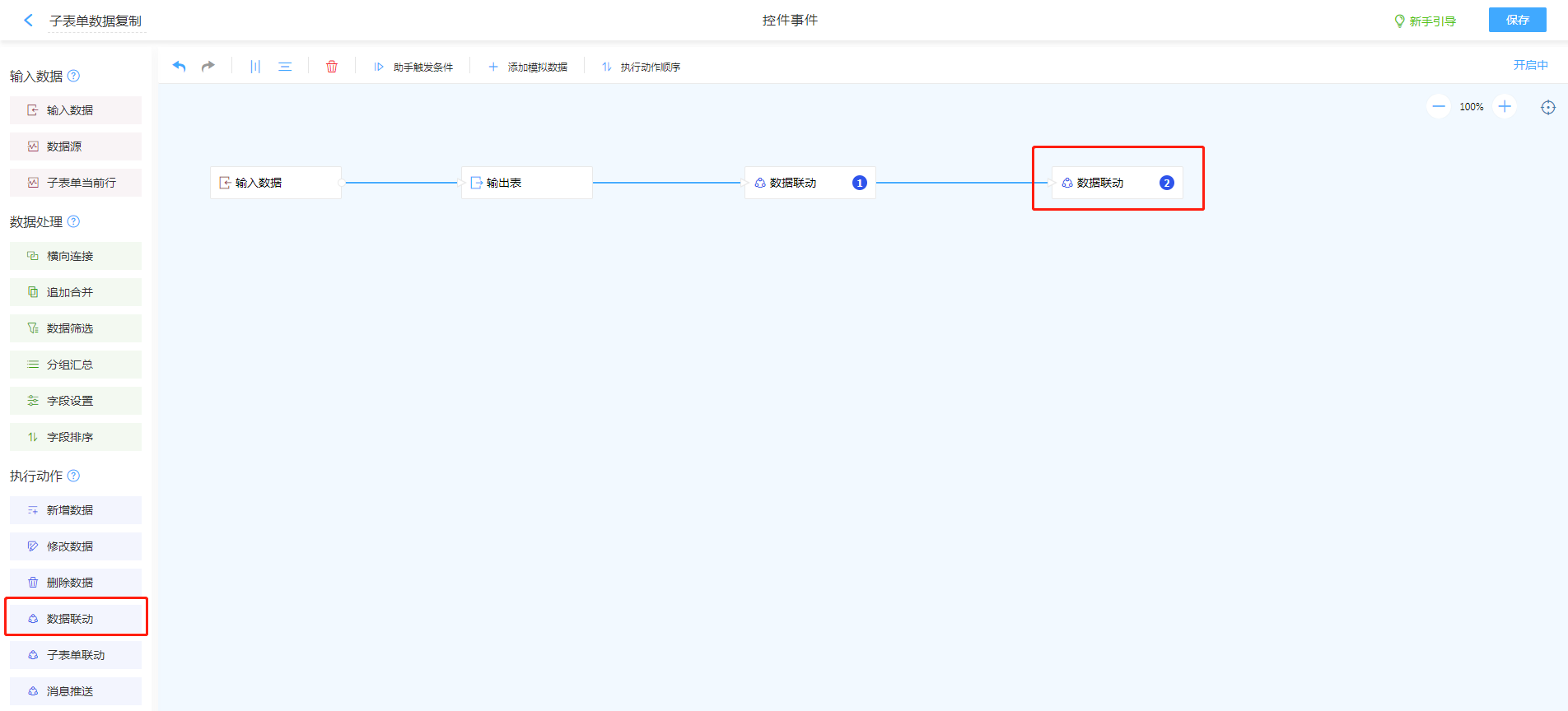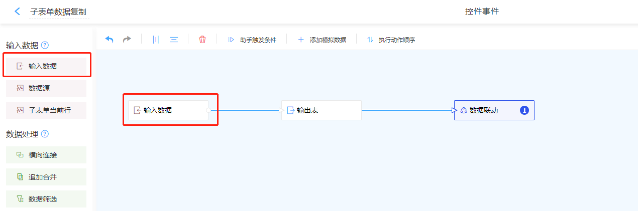 - 重复[步骤1-4],将子表单内需要联动的控件一次设置完成。