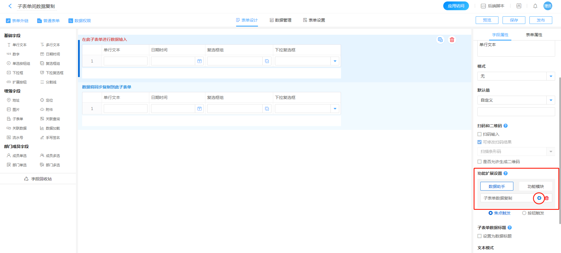 - 进入主子表单内控件的数据助手配置页面。