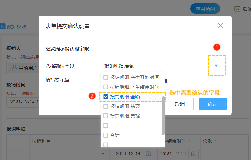 设置1. 选择确认字段:从下拉复选框中选中需要确认的字段。