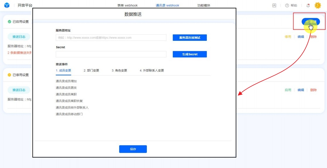 新建通讯录数据推送