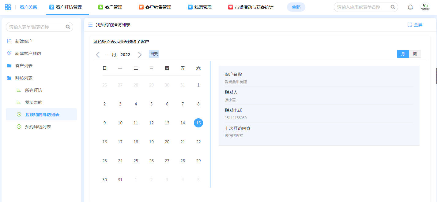 本章节我们将重点介绍客户拜访管理、客户关怀、客户反馈、客户满意度调查等客户关系维护部分的能力展示。