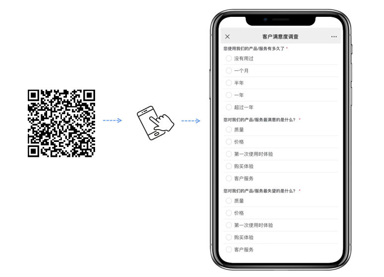 调查问卷可以以外链或者二维码扫码的形式进行发布,客户在pc端和移动端都能方便地操作填写。