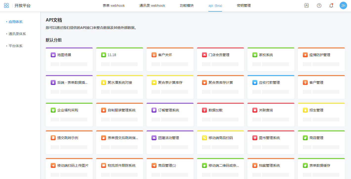 一码通凭借强大的全体系开放能力,能够最大程度上减少企业后期在发展的不同阶段,部署多领域应用的难题。在一码通,不仅能够让企业感受低代码开发的敏捷度,平台基于产品内的 API 接口,为用户提供开发能力,让用户可以通过自主开发或者使用官方、第三方服务商等开发的功能来实现企业个性化需求。