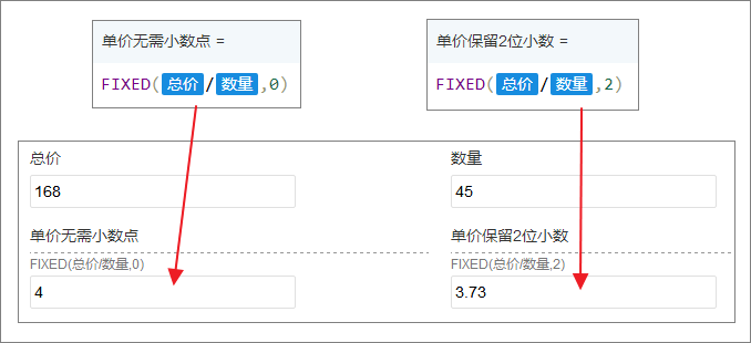 | number | 数字字段、数值型 | 要进行舍入并转换为文本的参数,非数字则按 0 处理。 |