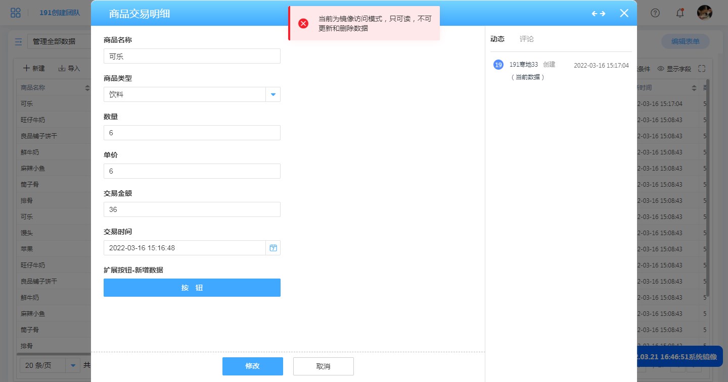 镜像访问模式,可以查看该时段内系统的数据情况,支持将数据管理和数据报表的内容进行导出、下载的操作。不支持任何数据的更新和删除操作。