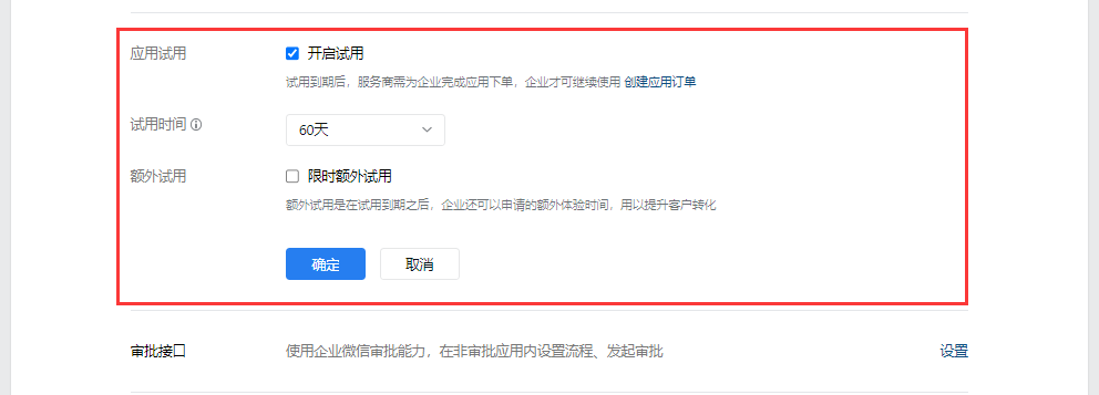 3)开启应用试用,试用时间可自定义选择7天、15天、30天、60天