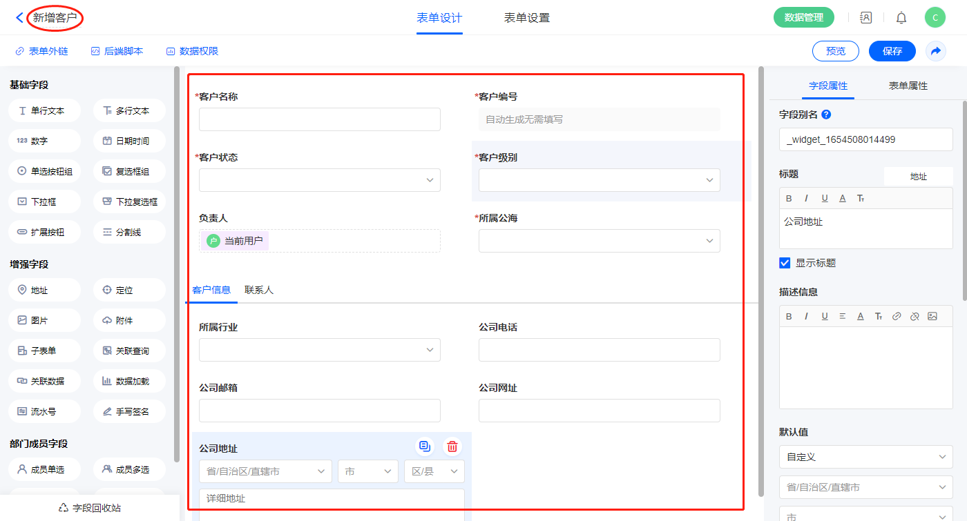 | 客户名称 | 单行文本 |