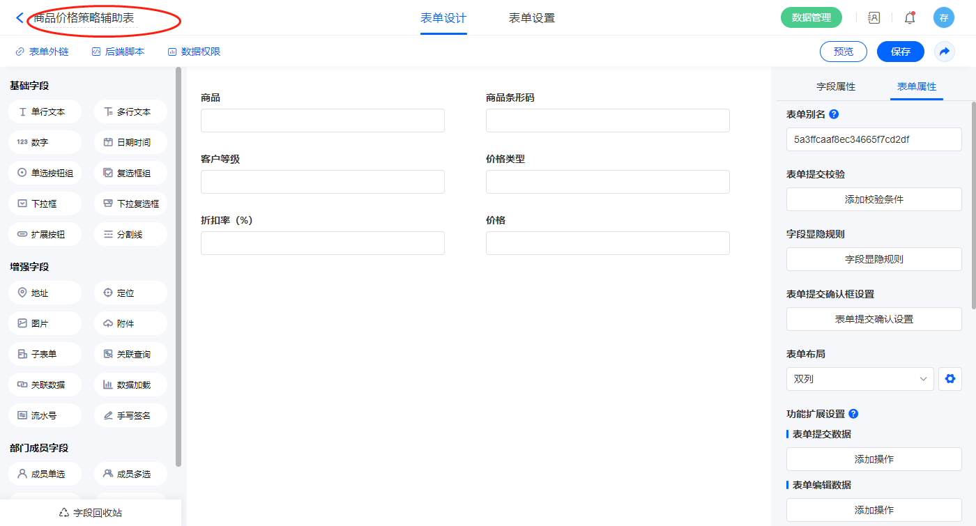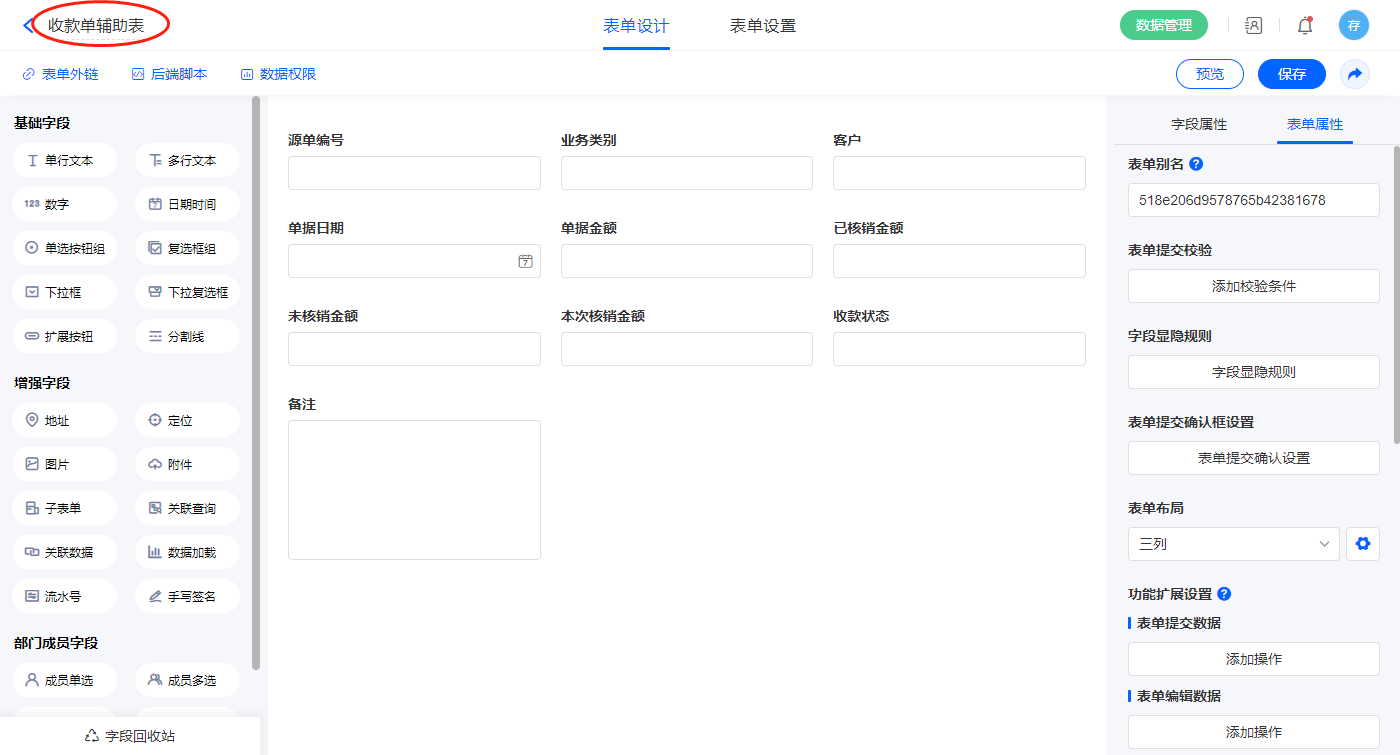 2.12、表单【销售开票记录表】字段及表单属性设置