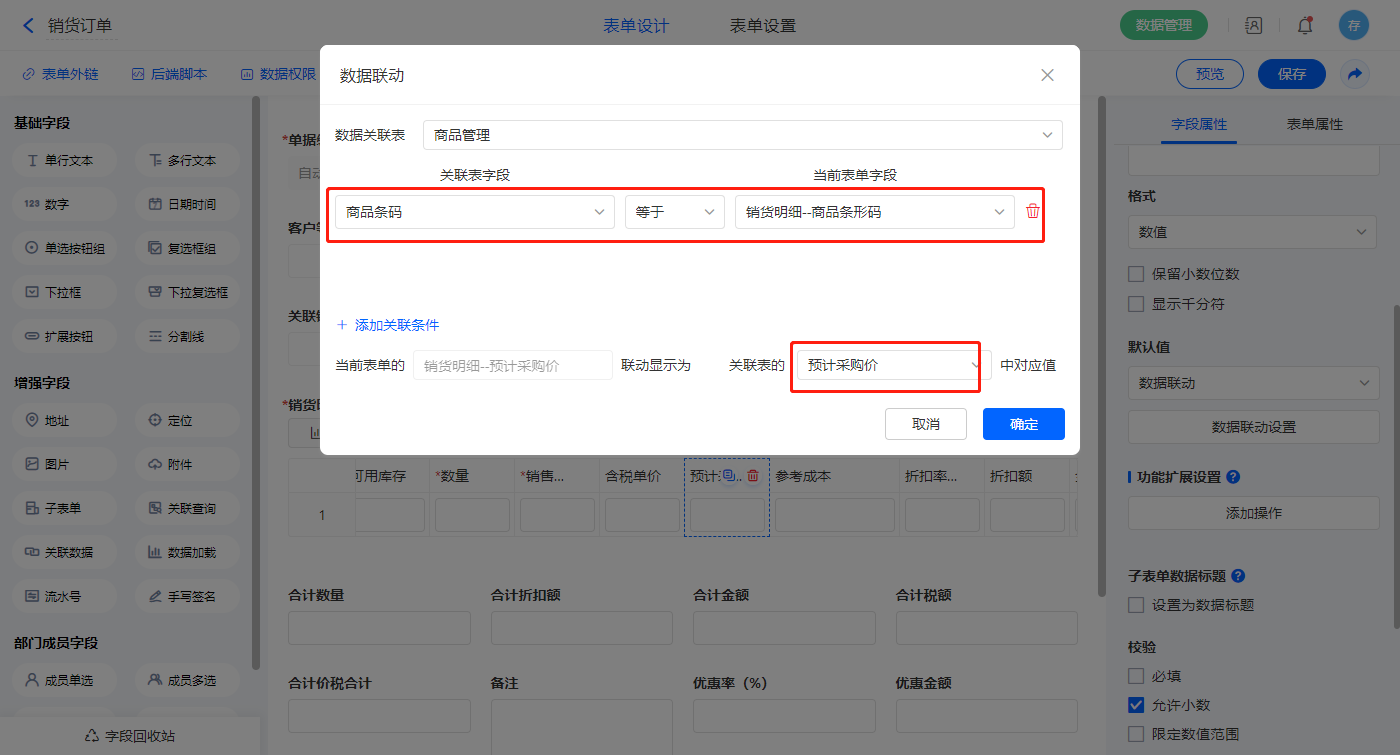 - 2.6、表单【销货出库单】字段及表单属性设置