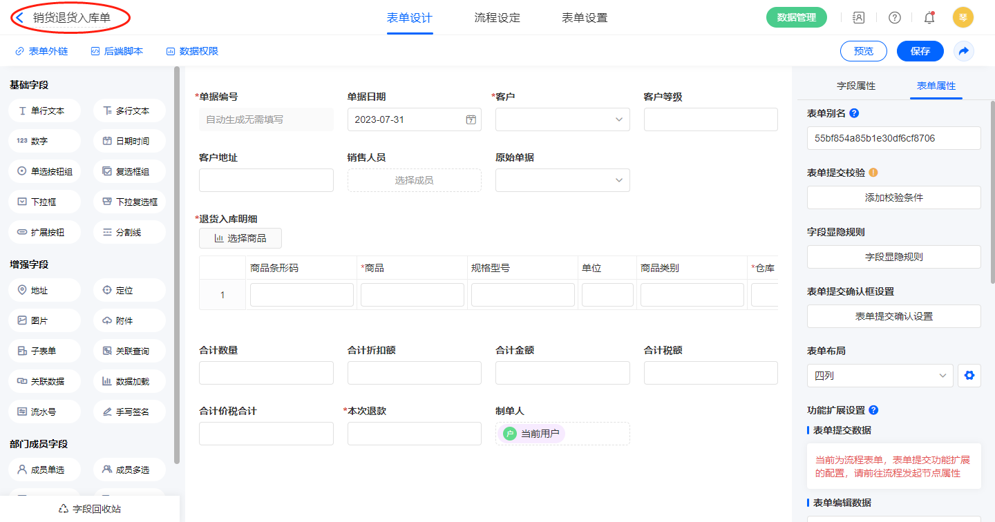 - 2.7、表单【销货退货单】字段及表单属性设置