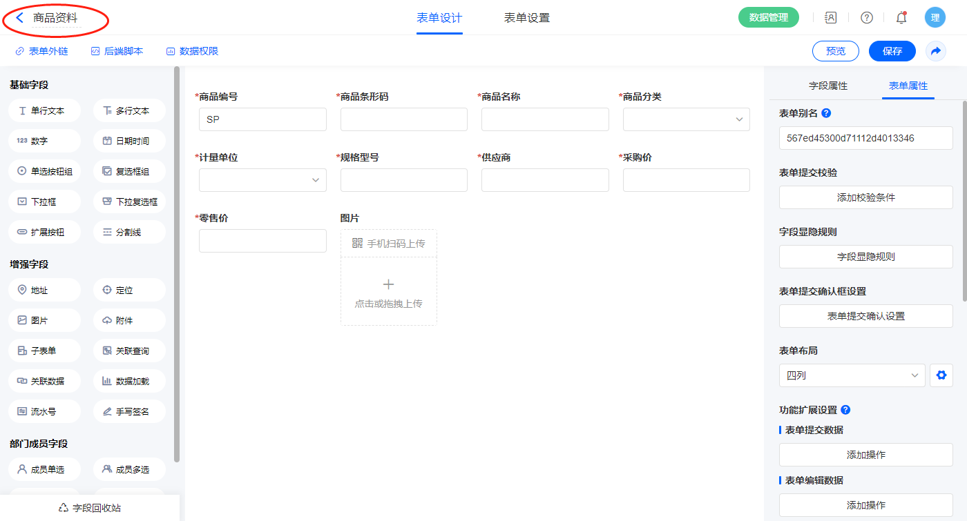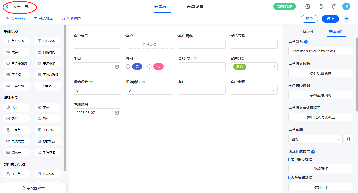 | 客户编号 | 单行文本 | 客户 | 成员单选 |