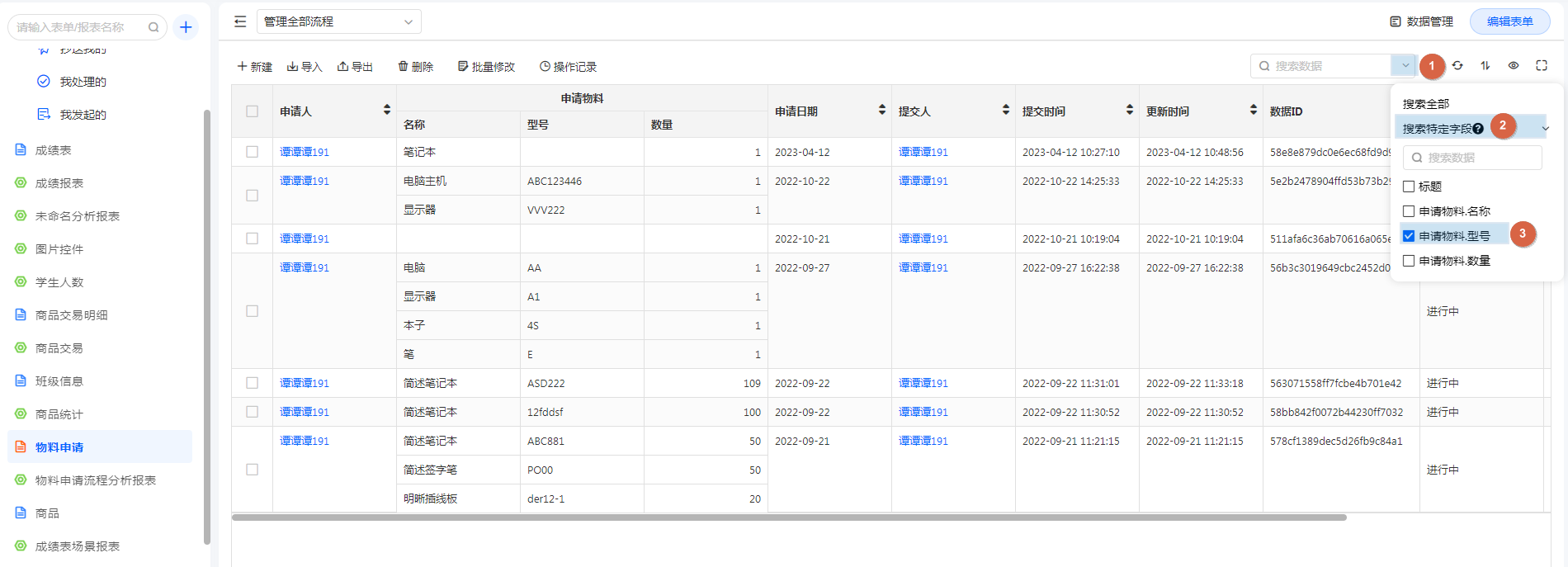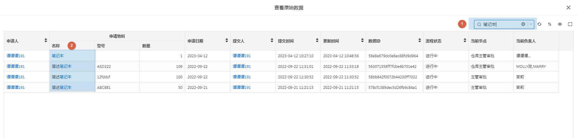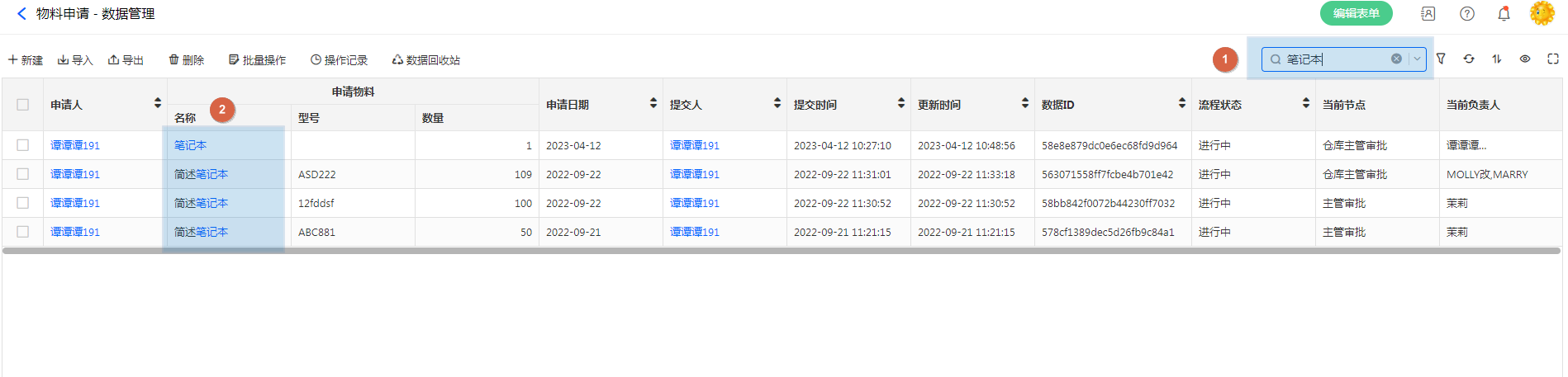 当数据量较大时,数据管理页可以通过关键词搜索快速检索需要查看的数据。