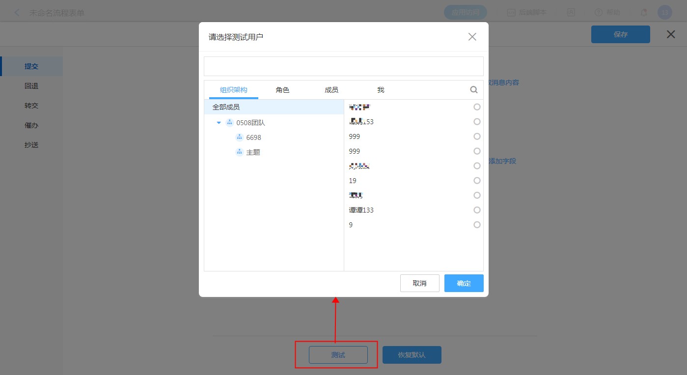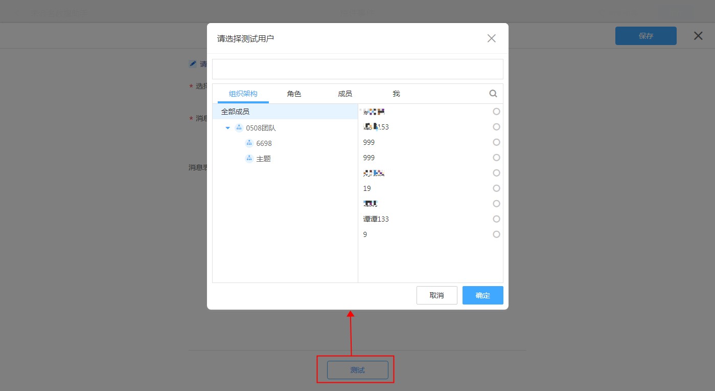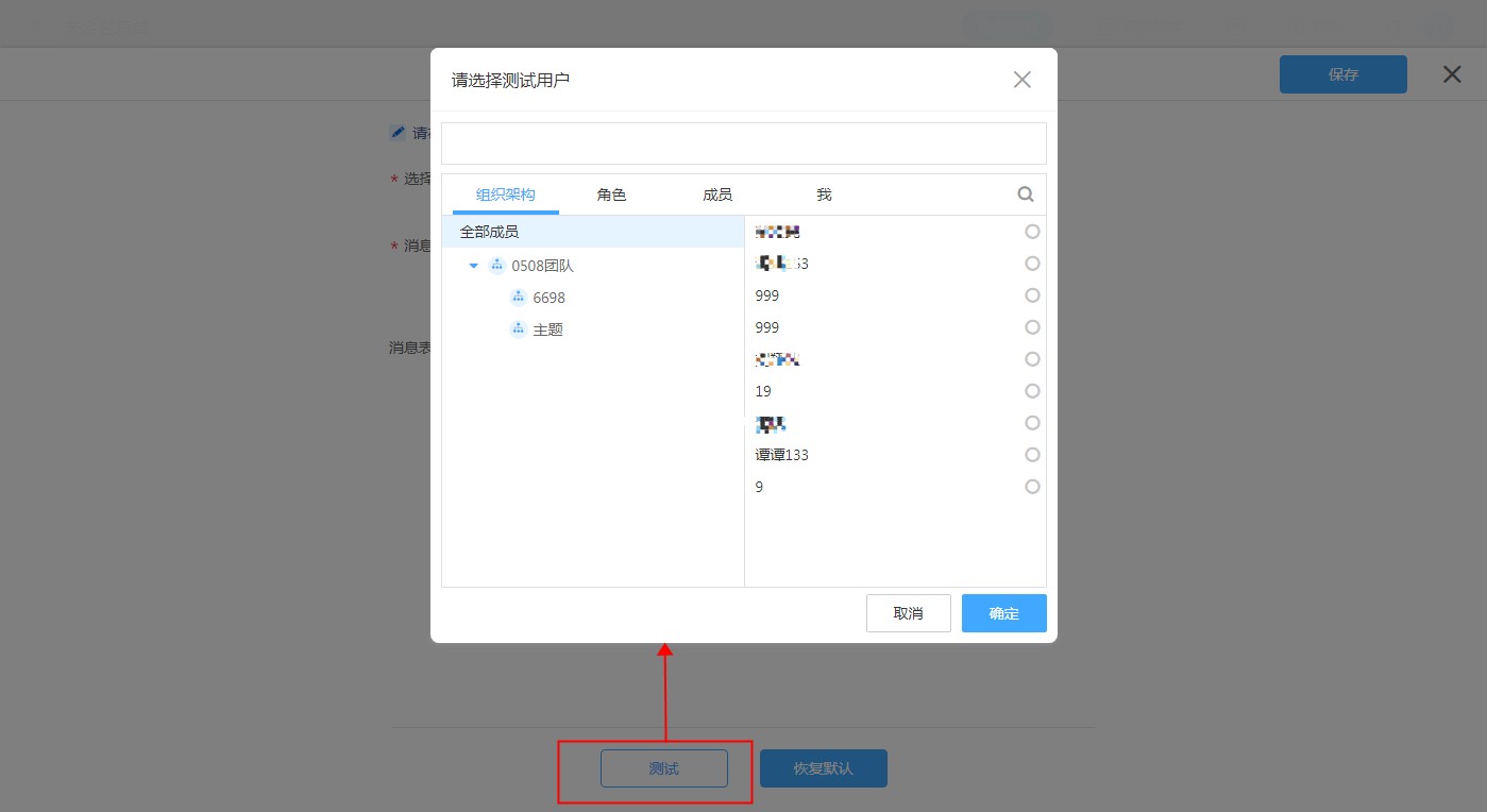 点击测试,选择收件人,确认即可将当前消息模板内容发送给此收件人。