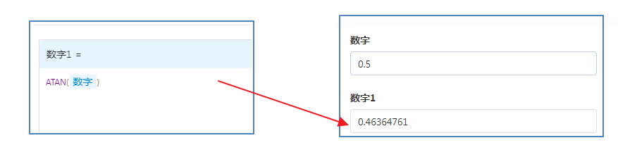 ATAN 反正切函数,用于计算给定参数的反正切值(arctangent)。