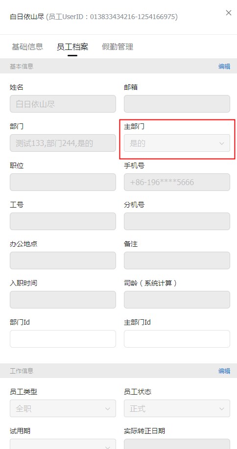 - 平台通讯录中默认会显示主部门信息,首次使用主部门功能时,建议手动同步更新信息后再使用。