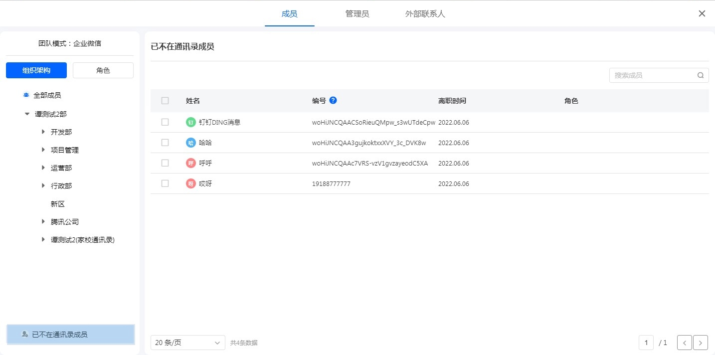 在企业微信管理后台操作组织架构及成员信息时,人员同步至通讯录再同步到表单通讯录中