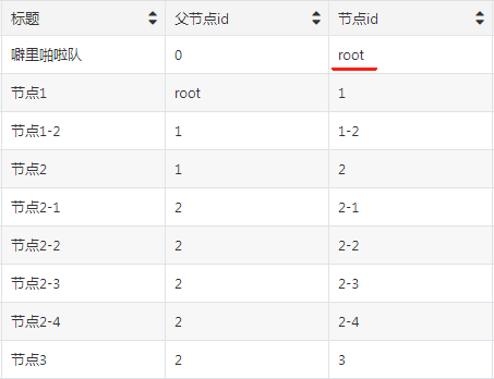 - 根据【节点ID】和【父节点ID】形成树形结构,通过根节点ID拉取首批节点,展示项为标题