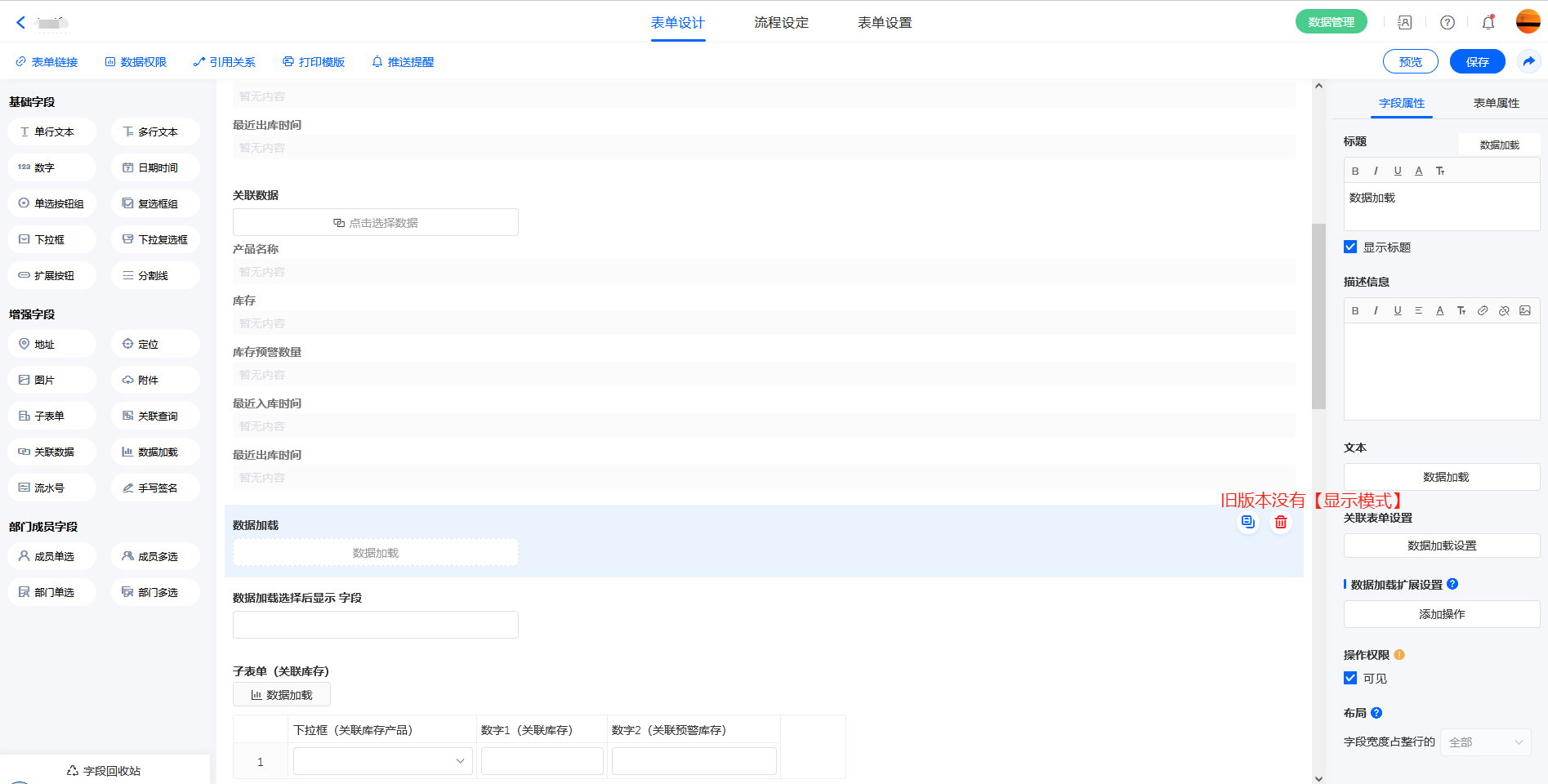 - 子表单行字段 支持数据加载,单行加载的数据只会填充当前行。