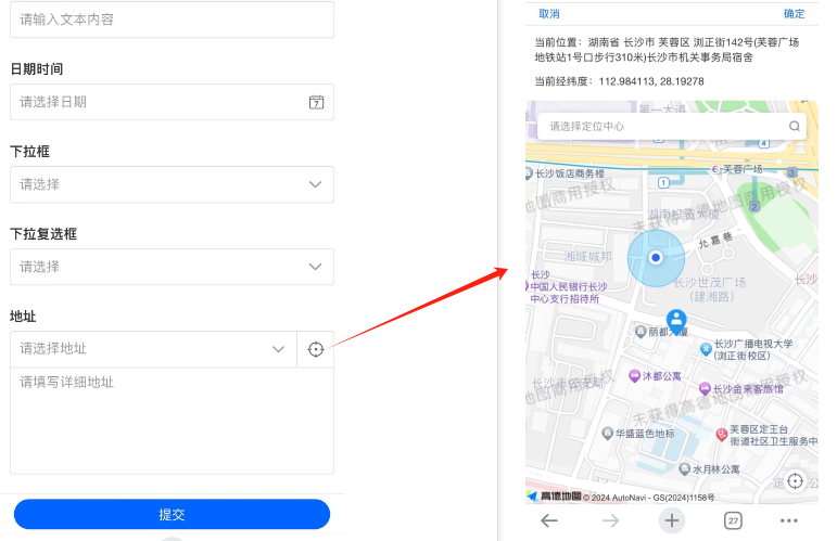 | 设置入口:表单设计-地址字段-【开启经纬度定位】 |