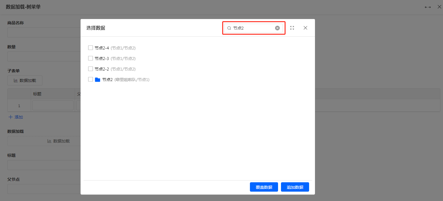- 子表单数据加载-树菜单节点支持全选