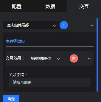 如 事件展示列表 组件设置交互效果 飞到地图点位,点击列表中的数据项,就会有飞到地图点位效果。