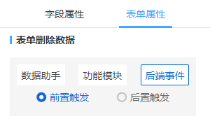 如果选择【后置触发】:表示后置提交,先删除数据,再执行后端代码,返回True或False对数据没有影响,只是给前端的提示。