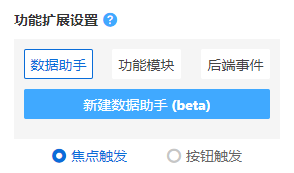 数据助手事件』入口函数,启用数据助手后,可在常规范围内配置数据操作相关功能。