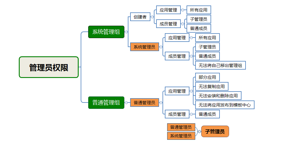 应用权限:普通管理员可以管理设置的应用。