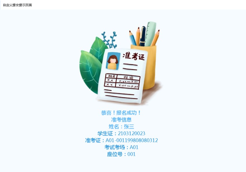 如下图,表单数据提交后,出现自定义的提交提示。