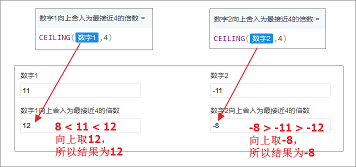 将参数“number”向上舍入(沿绝对值增大的方向)为最接近的“significance”的倍数。