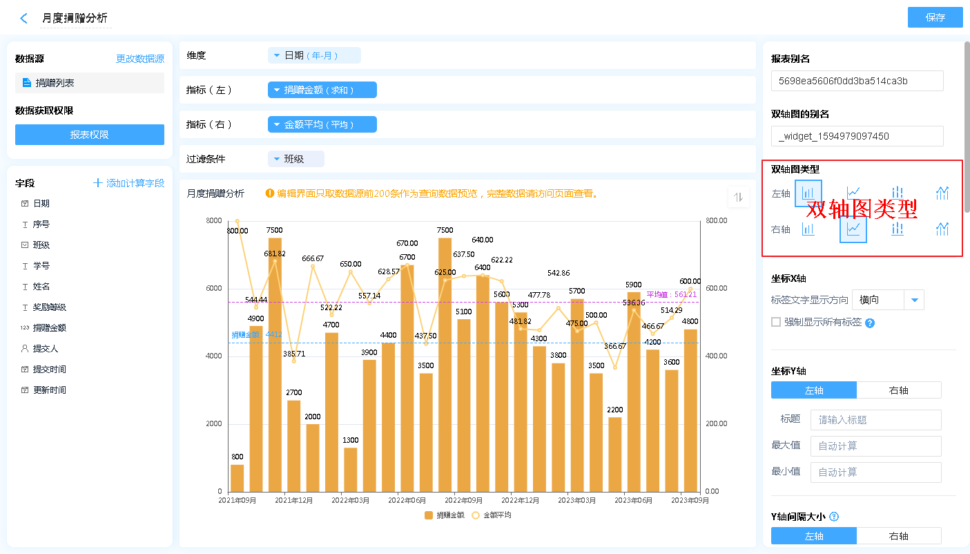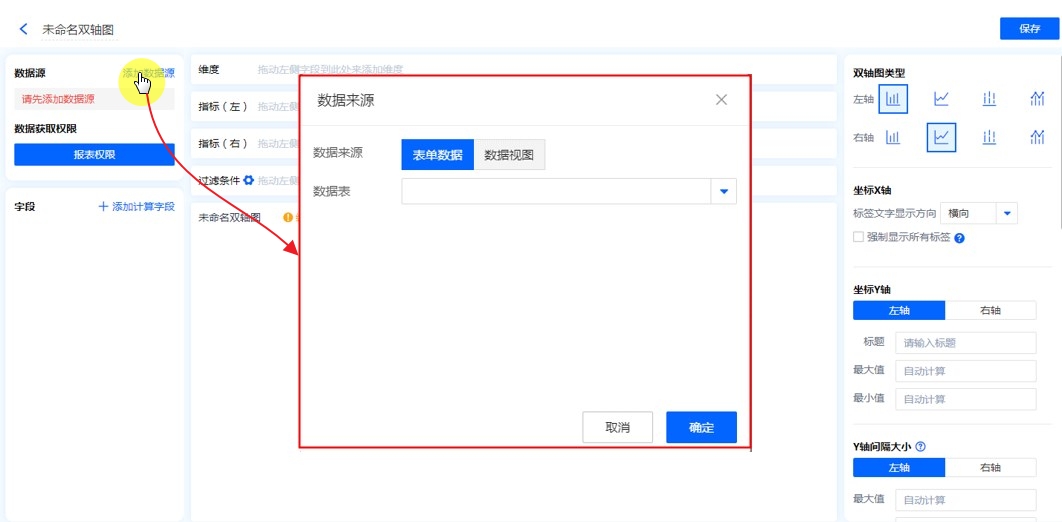 数据源就是指当前双轴图表的数据来源,可以是表单、数据视图。