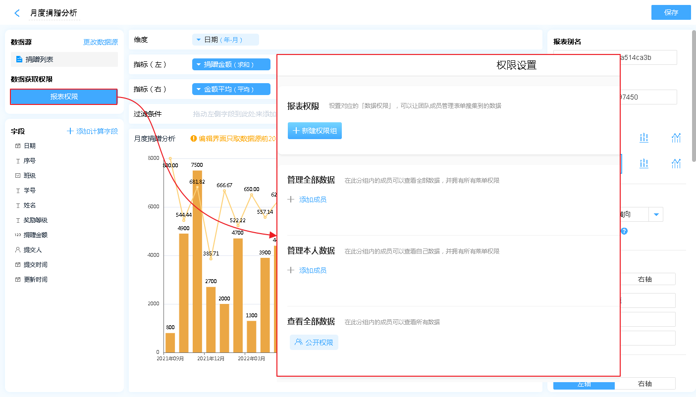 报表权限是指该报表的数据哪些人可以操作报表的数据,分别有什么操作权限。