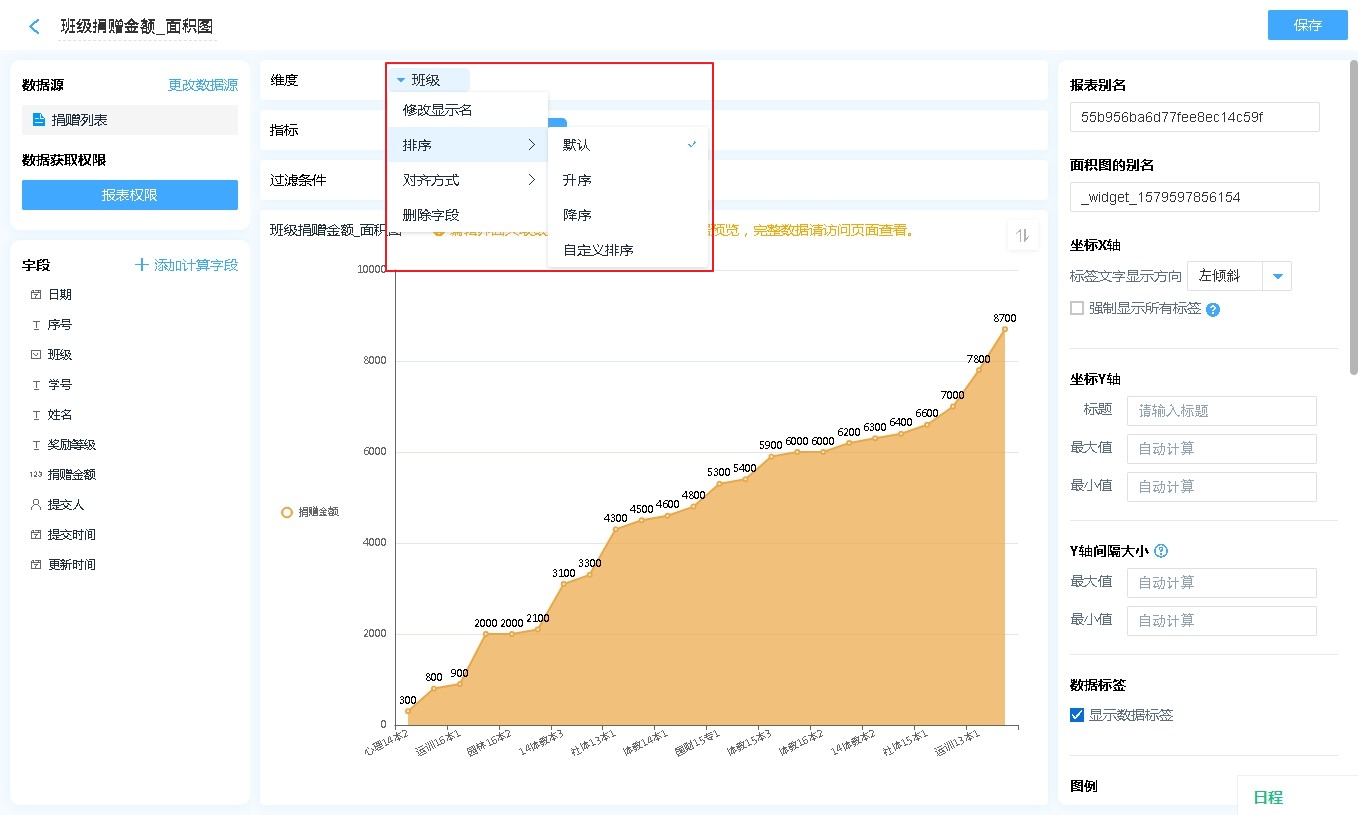 数据源就是指当前面积图表的数据来源,可以是表单、数据视图、聚合表。