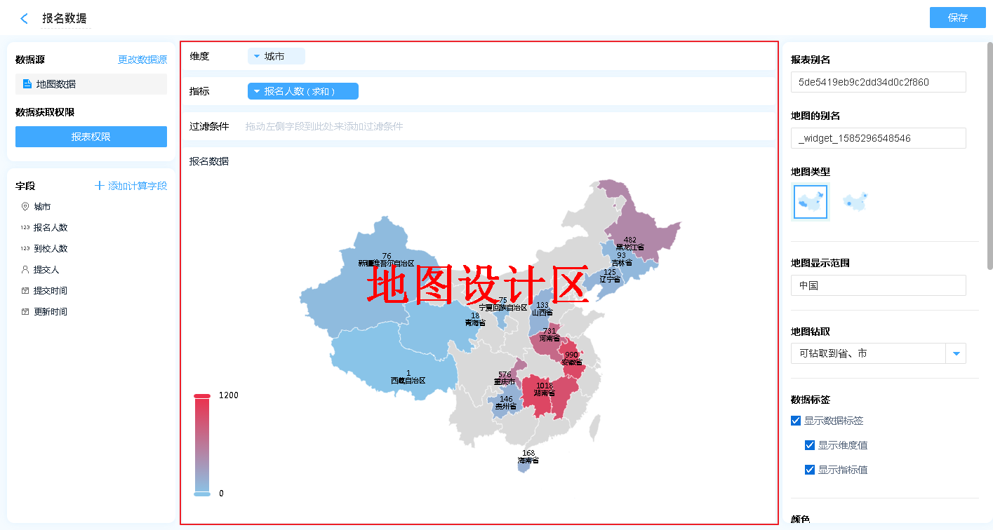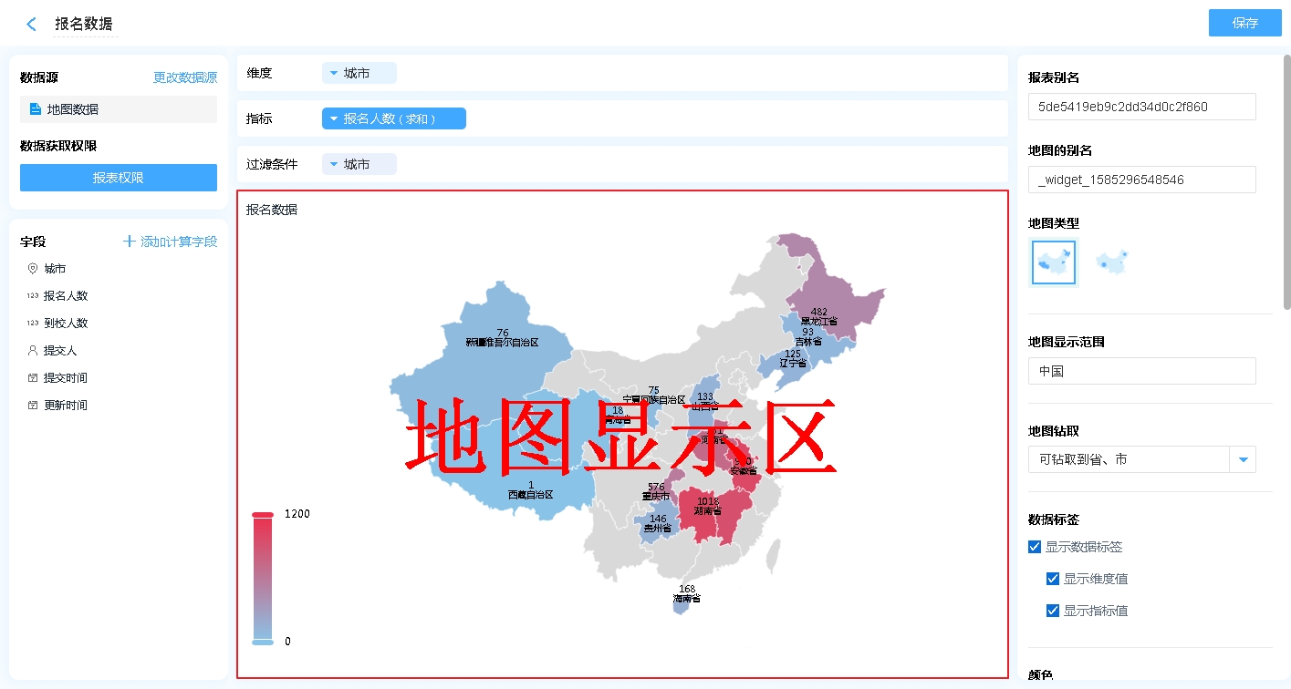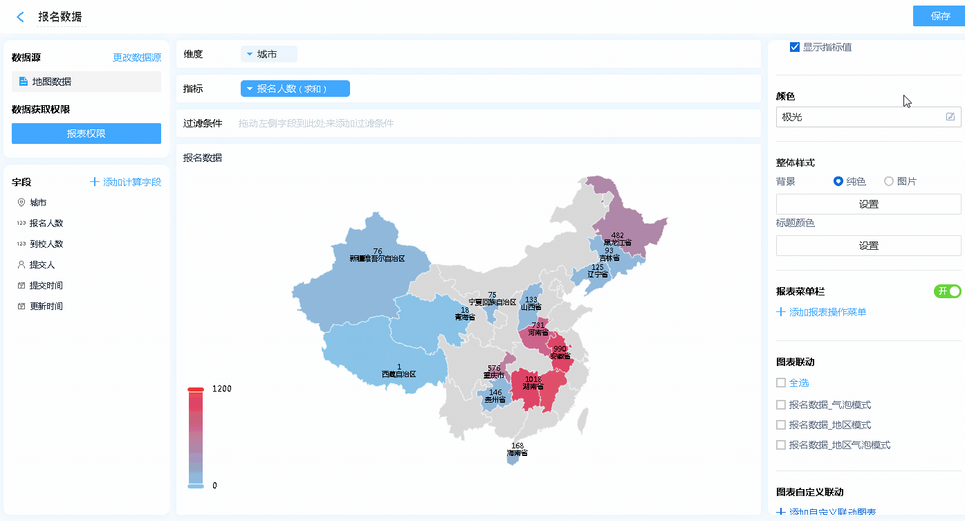 地图报表主要用来统计不同区域的数据,进行数据分享;