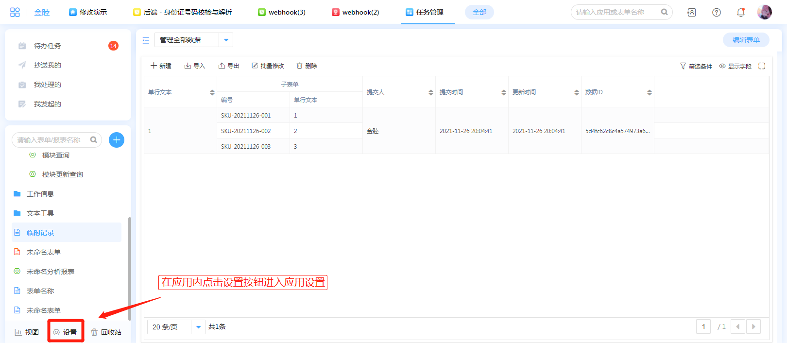 | 应用管理(进入应用设计页面) > 设置 > 聚合表 |