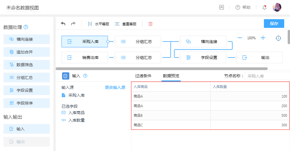 数据源默认配置下,是关联全表数据,可以配置“过滤条件”进行筛选符合条件的数据传入视图使用。