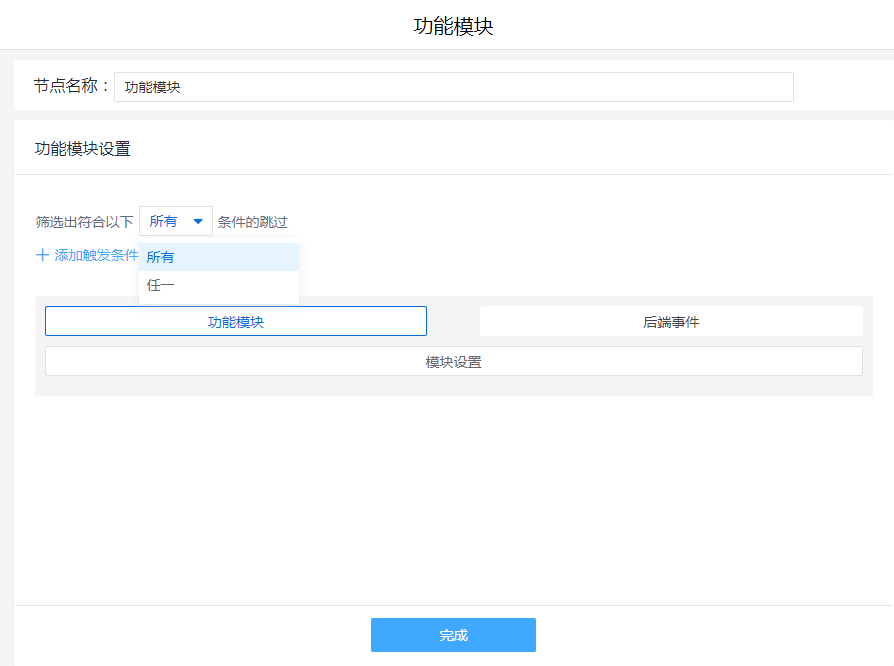 点击【添加触发条件】即可设置条件,设置触发条件后,满足条件的数据会不执行功能插件
